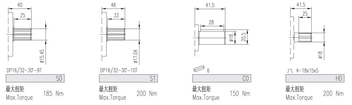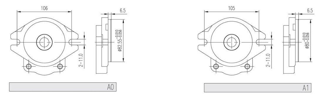 | 排量 | 最大壓力 | 最高轉速 | 最低轉速 | 重量 | 尺寸 | 油口代碼 | 進油口 | 出油口 | |||